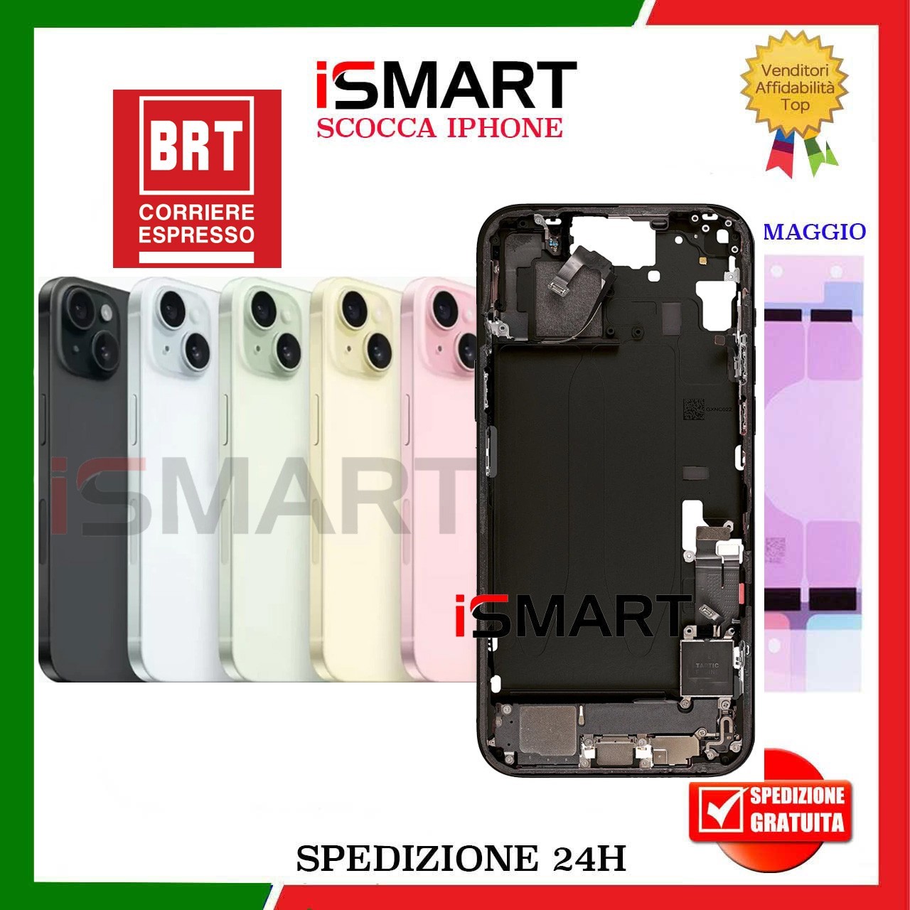 SCOCCA POSTERIORE COMPLETA PER IPHONE 15 TELAIO + VETRO CON FLEX TELAIO FRAME